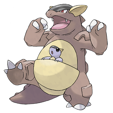 1세대에 등장한 포켓몬. 이름의 유래는 캥거루(포육낭)와 칸(머리와 어깨 형태)으로, 일칭은 '(カン)ガルーラ', 영칭은 'Kanga(roo)skhan'이라 표기한다. 정작 생김새는 캥거루라 하기엔 덩치가 크고[3], 오히려 드래곤이나 공룡을 비롯한 파충류에 가깝다. 파충류의 생김새를 가지면서 캥거루의 특성인 포육낭을 지닌 점이 포인트. 또한 대부분의 포유류를 모티브로 한 포켓몬이 속한 육상 그룹에 속해있지 않고 오로지 괴수 그룹에만 속해 있다. 캥거루괴수 판도라의 영향을 받은 듯.